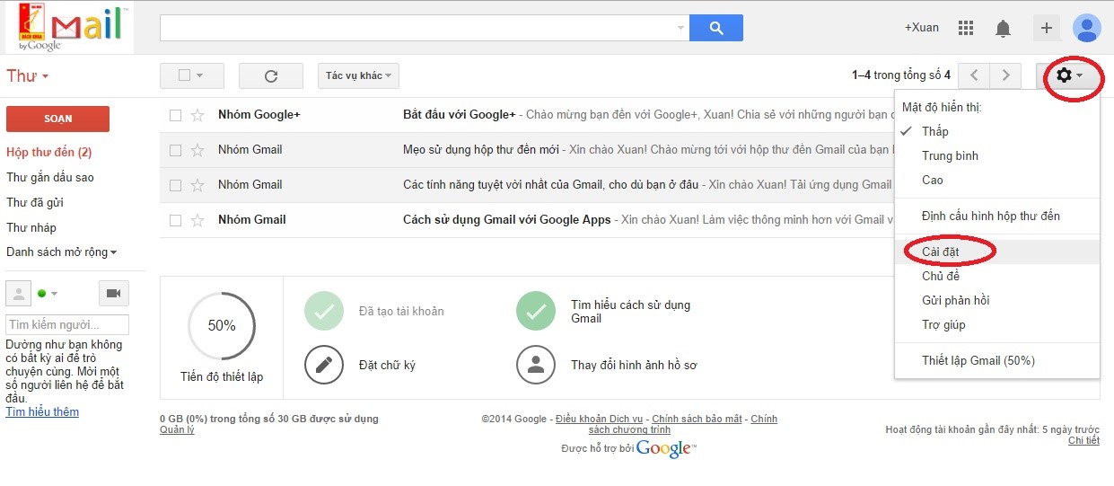 Bước 1: Click vào hình Bánh răng phía trên bên phải màn hình