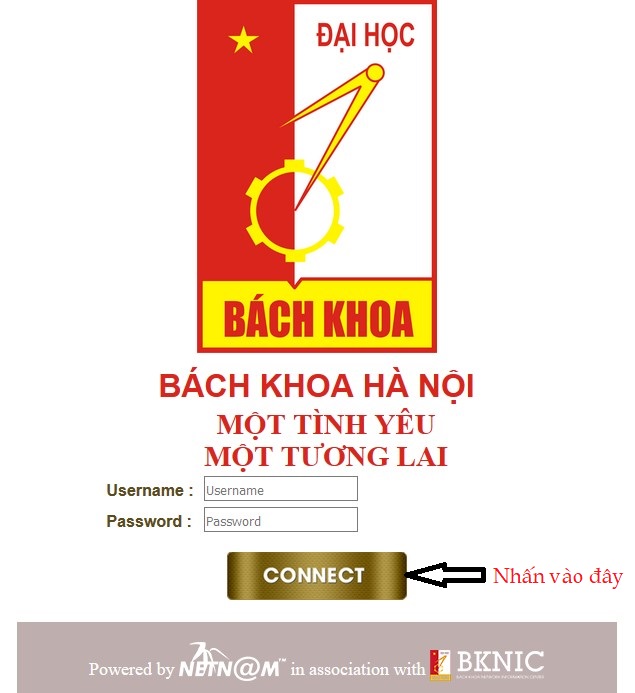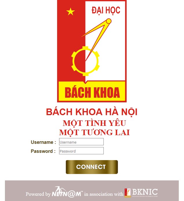 - Trong trường hợp một số máy không tự động bật màn hình đăng nhập thì người dùng có thể tự thao tác bằng cách mở một trình duyệt bất kỳ( IE, FireFox, Chrome.. ) sau đó vào thanh địa chỉ gõ một link website bất kỳ( Ex: https://hust.edu.vn) thì trên màn hinh sẽ đẩy ra giao diện đăng nhập và kết nối như trên.