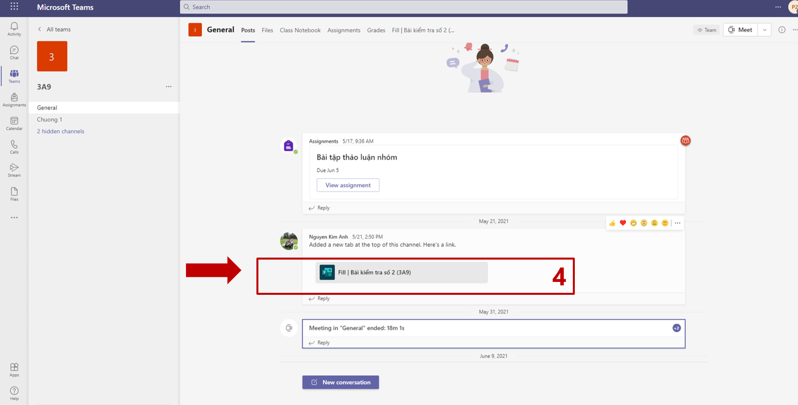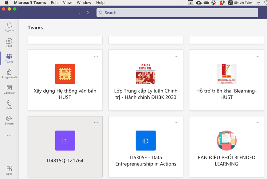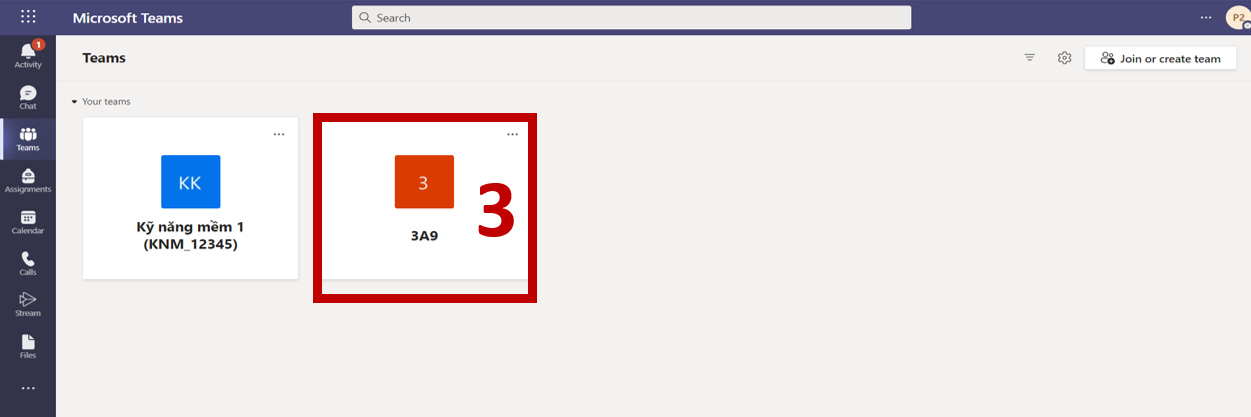 Bước 2. Vào đúng lớp học ở menu Teams bên trái màn hình
