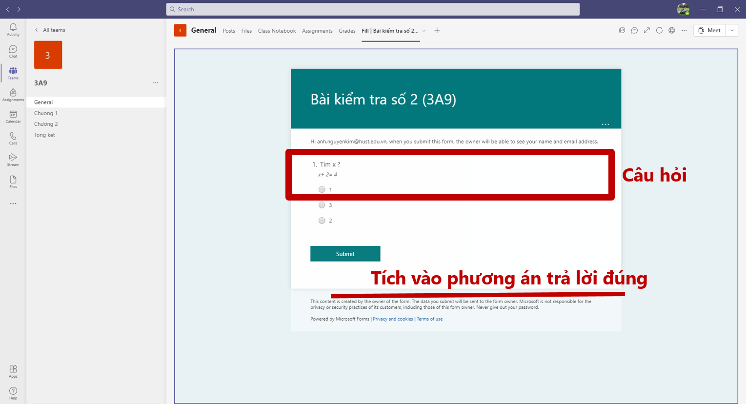 * Hướng dẫn làm bài kiểm tra Quiz trên Ms Teams