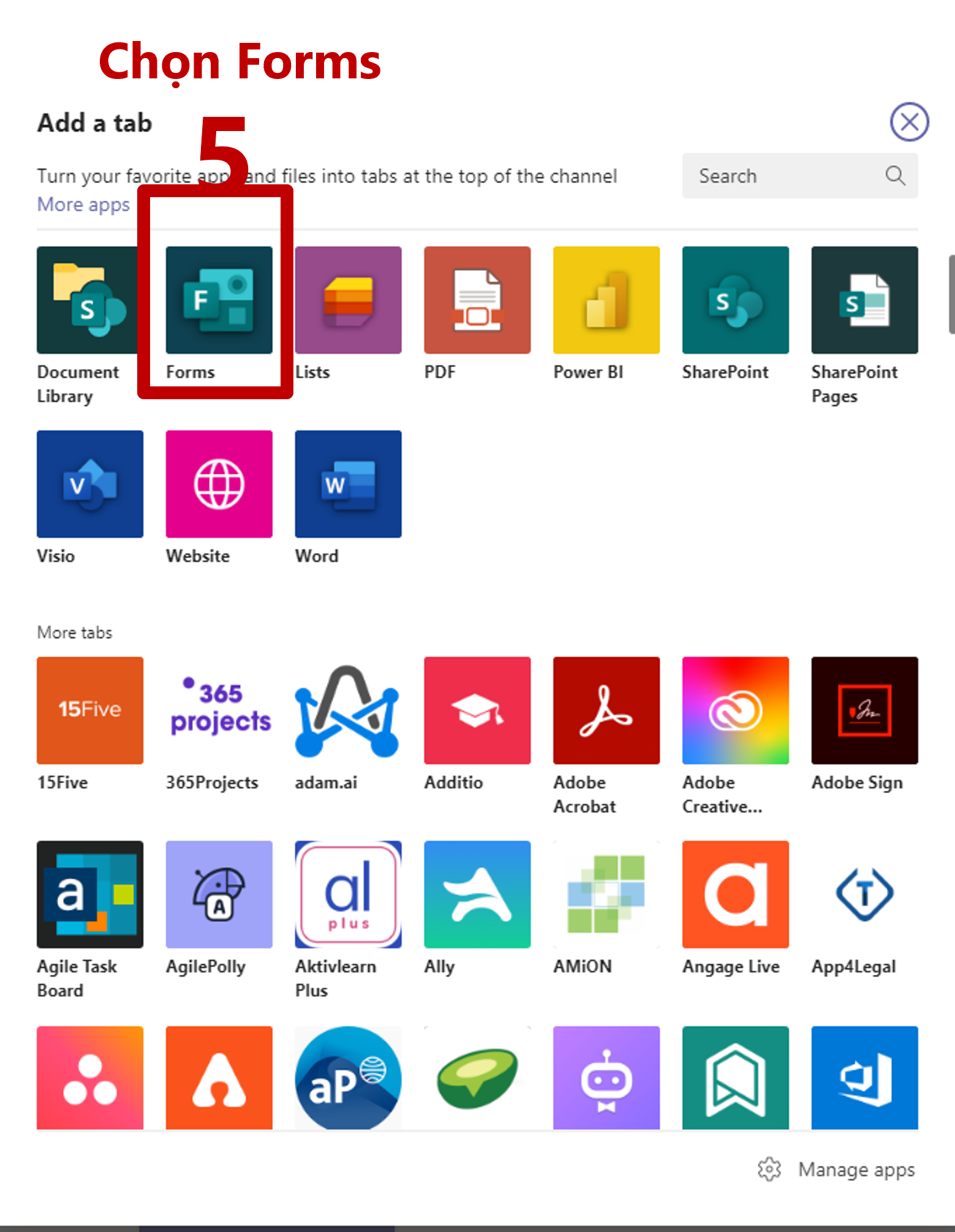 Bước 5: Chọn Forms