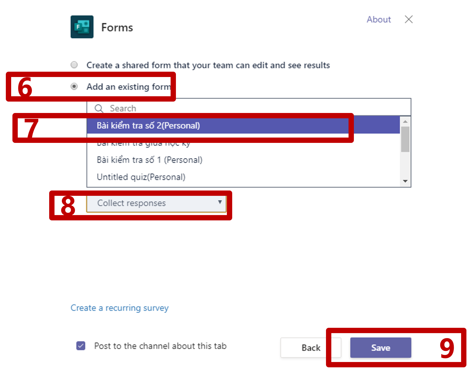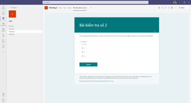 Xem giao diện nội dung Form được nhúng vào kênh của lớp học trên Teams