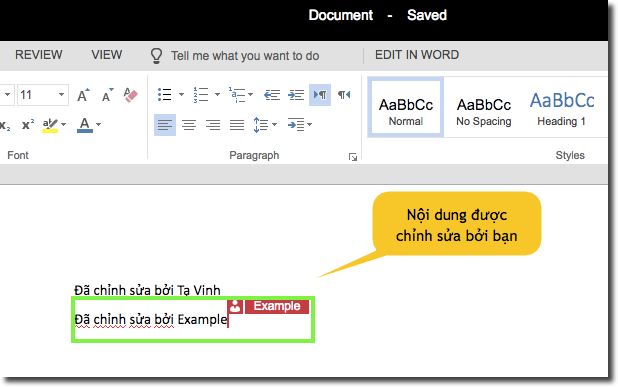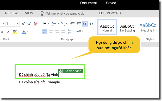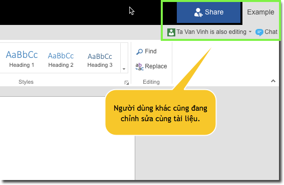 Các người dùng khác cùng làm việc trên cùng file có thể thấy nội dung được cập nhật và người đã sửa đổi nội dung.