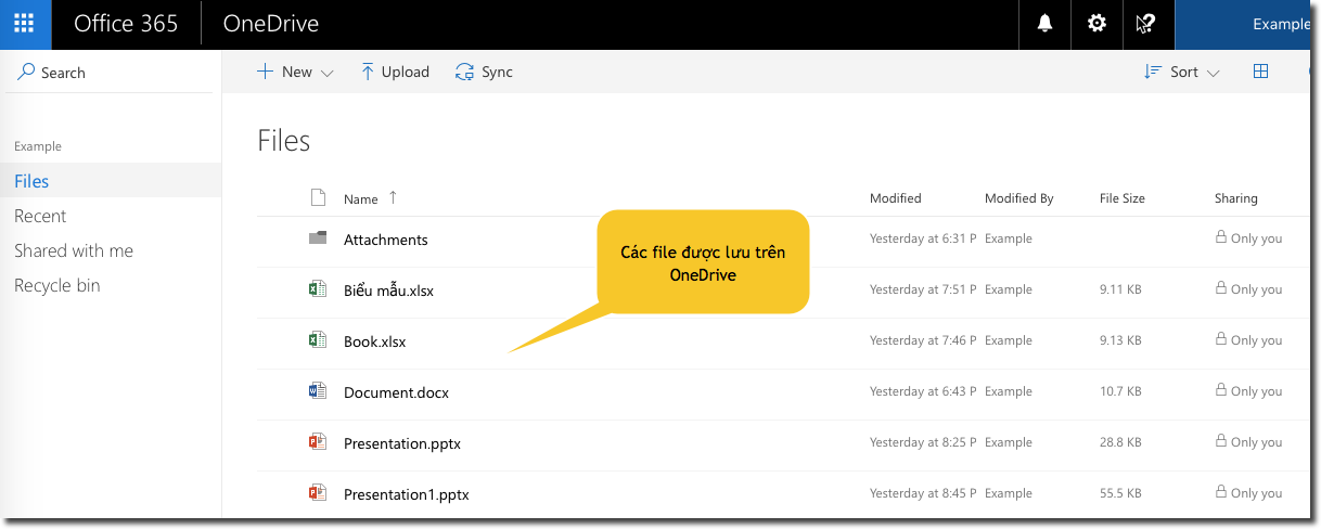 Đây là nơi chứa các file Word, Excel, PowerPoint khi lưu online và các file được người dùng upload lên cloud.