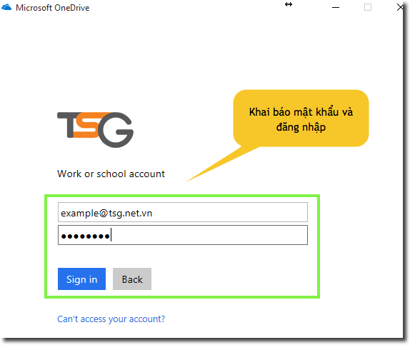 Khai báo thông tin tài khoản và mật khẩu, sau đó tiến hành đăng nhập.