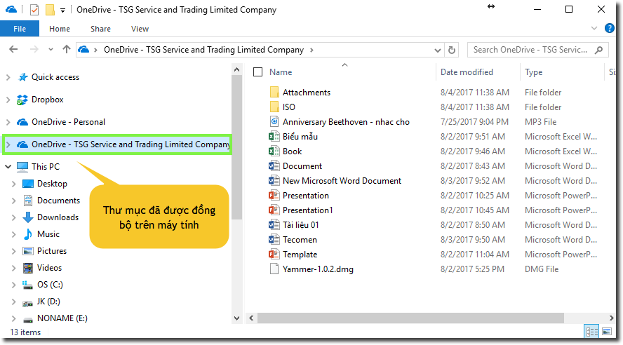 Sau khi hoàn tất việc đồng bộ này, dữ liệu OneDrive trên Cloud đã được đồng bộ tự động với OneDrive trong máy tính cá nhân của bạn