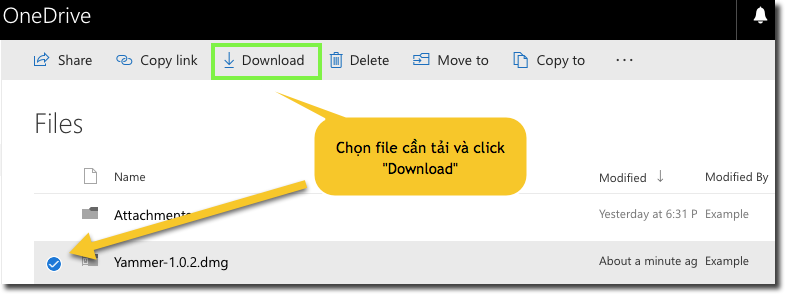 Để tải 1 file từ OneDrive về máy, tích chọn vào file cần tải, chọn Download