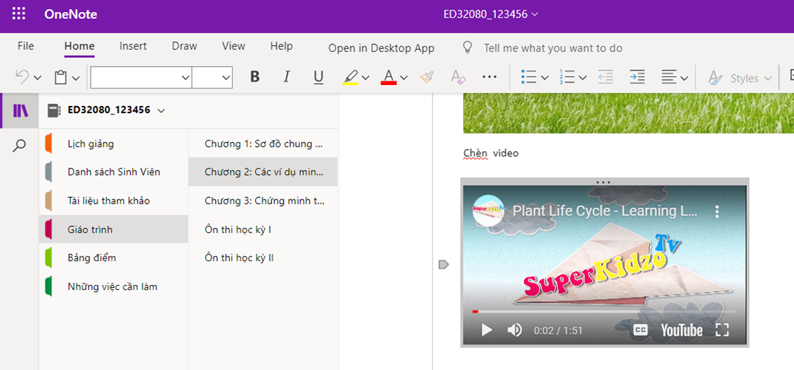 Trong OneNote, chọn vị trí cần chèn video sau đó nhấn Ctrl + V để dán đường link.