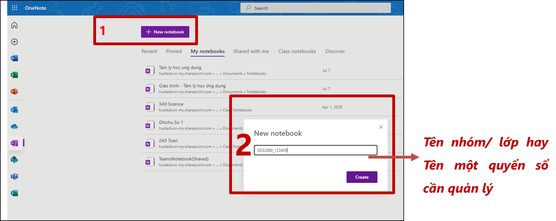 1. Tạo một Nhóm/Lớp để quản lý trên OneNote : Chọn New notebook
