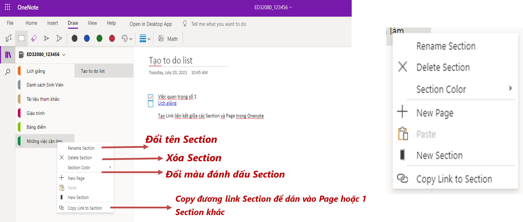 3. Sửa tên / Delete Section/ Đổi màu đánh dấu Section: Click chuột phải vào Section đã tạo