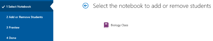 Bạn có thể thêm sinh viên vào notebook theo từng người hoặc một nhóm, chẳng hạn như một nhóm bao gồm tất cả sinh viên trong một class. Nhóm phải được thiết lập trong Azure Active Directory hoặc Office365. Để thêm một nhóm, đơn giản chỉ cần nhập một phần tên nhóm, và sau đó chọn nó trong danh sách xổ ra. Nếu thành viên của nhóm thay đổi sau khi tạo notebook được tạo, bạn có thể quay lại ứng dụng OneNote Class Notebook và click chọn Add or Remove Students để đồng bộ sự thay đổi.