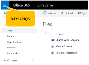 Từ trang giao diện Office365, click hoặc tap vào thanh menu ứng dụng.