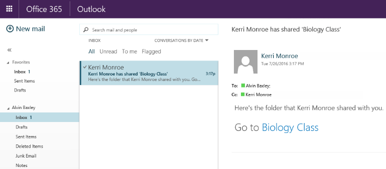 Những sinh viên sử dụng tài khoản Office365 của tổ chức sẽ tự động được thông báo khi OneNote Class Notebook được chia sẻ với họ.