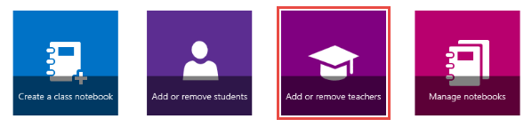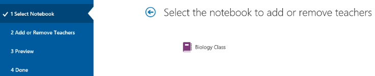 Chúng ta quay lại trang chính của ứng dụng OneNote Class Notebook để thấy cách giảng viên có thể chia sẻ notebook với đồng nghiệp hoặc nhân viên trong trường. Click hoặc tap Add or remove teachers.