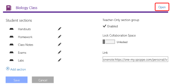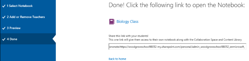 Bây giờ bạn có thể cung cấp liên kết class notebook đến các giảng viên mà bạn vừa thêm vào.