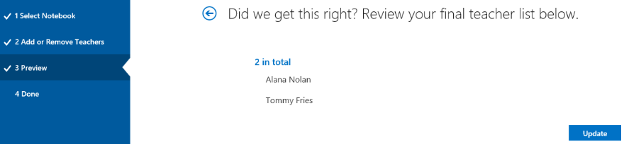 Xác nhận tên các giảng viên rồi click hoặc tap Update.