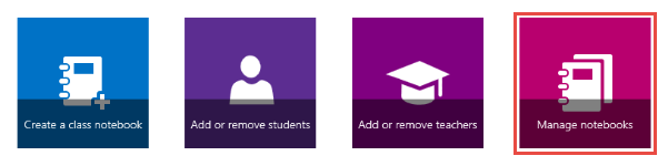 Với OneNote Class Notebook, bạn có thể quản lý tất cả các notebook đã tạo từ một nơi duy nhất. Click hoặc tap Manage notebooks từ trang giao diện chính.