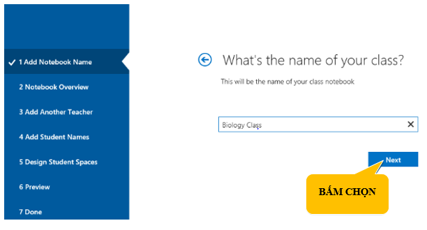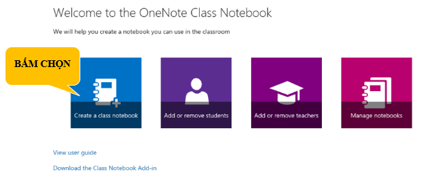 Để bắt đầu, click hoặc tap Create a class notebook.