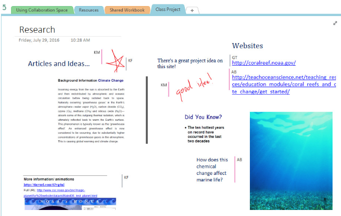 Một tính năng tuyệt vời khác của class notebook là Collaboration Space.