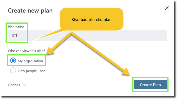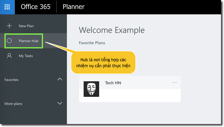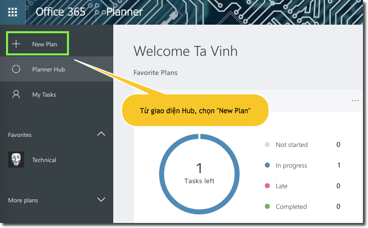 Tạo mới Planner, từ giao diện Hub chọn "New Plan".