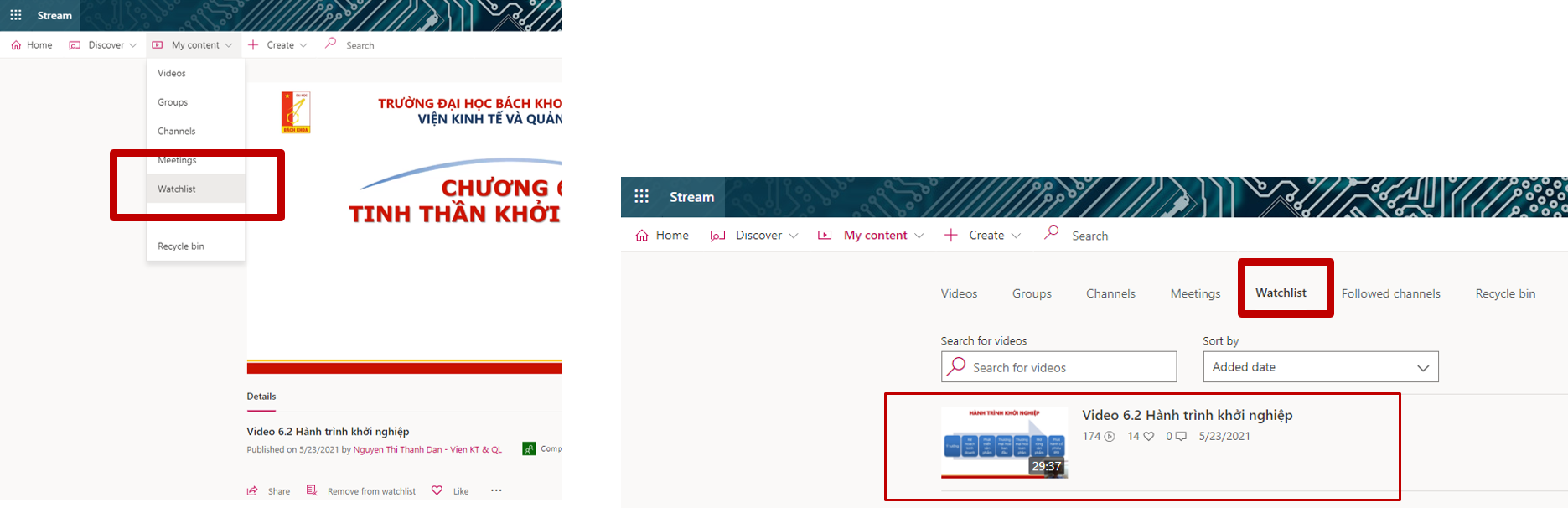 - Kiểm tra lại video cần lưu trong My content/ Watchlist