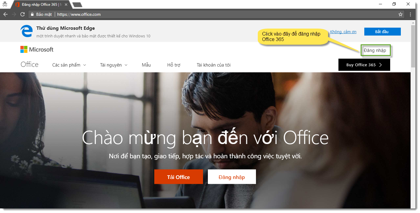Từ trình duyệt Web đăng nhập vào đường dẫn: https://www.office.com/