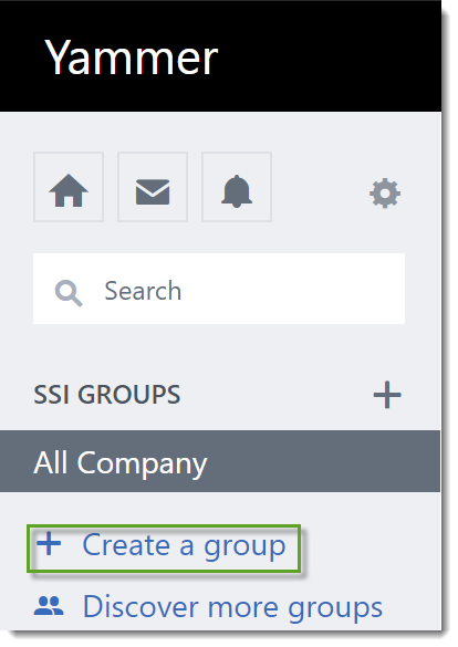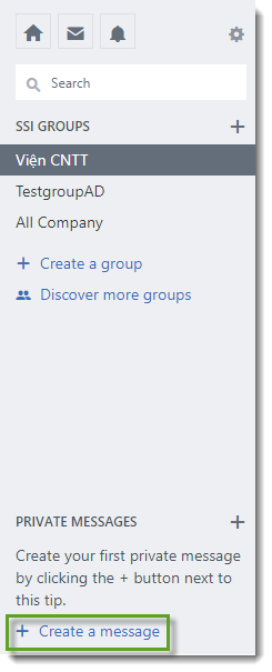 Trong giao diện Home của Yammer, Nhấn vào “+Create a message” ở góc dưới bên trái màn hình