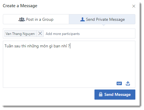 Tính năng Message giúp cho cán bộ, giảng viên và sinh viên trong nhà trường có thể gửi tin nhắn, tương tác trao đổi thông tin trực tiếp với nhau hoặc với một group
