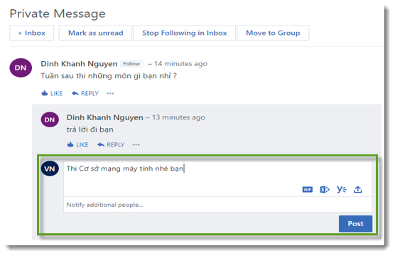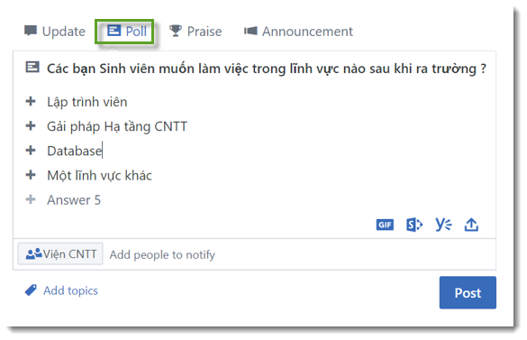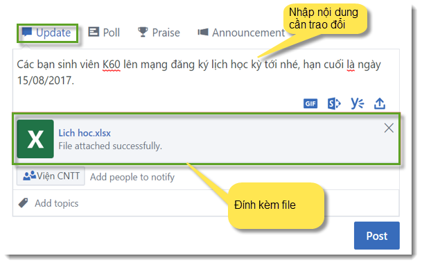 Cập nhật trạng thái :chia sẻ với các thành viên khác trong cùng Yammer group