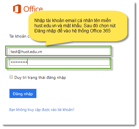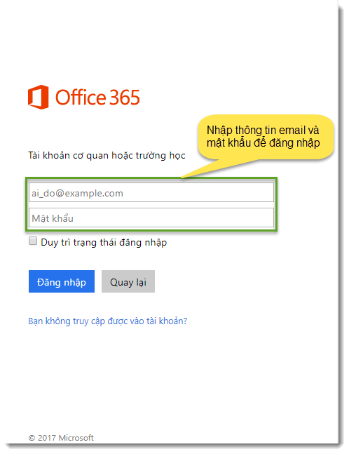 Nhập thông tin tài khoản được cấp để đăng nhập vào mạng Yammer
