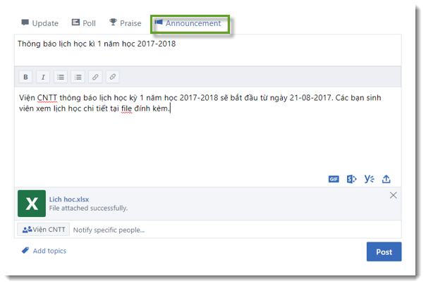 Tạo một thông báo đến tất cả các thành viên trong Yammer group