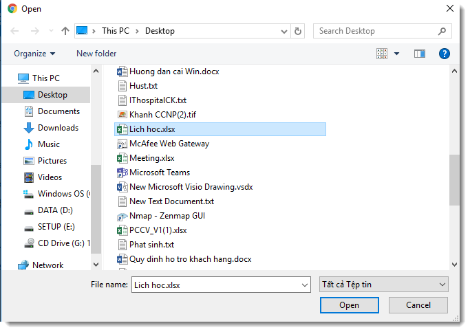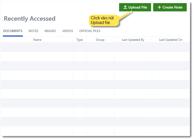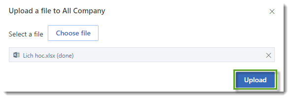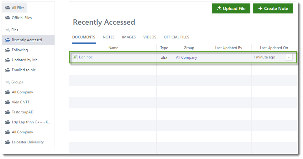 File vừa Upload thành công sẽ hiển thị trong bảng danh sách các file đã Upload