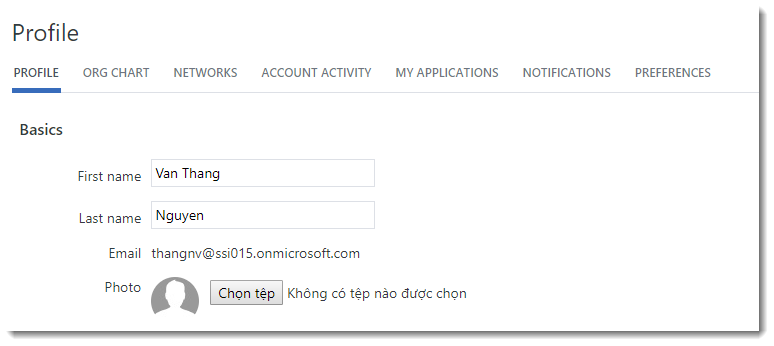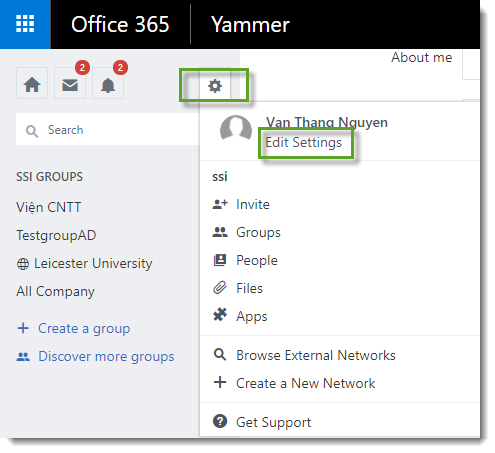 Trong trang chủ cá nhân Yammer, truy câp vào mục Edit Seting để hiển thị các thông tin cá nhân