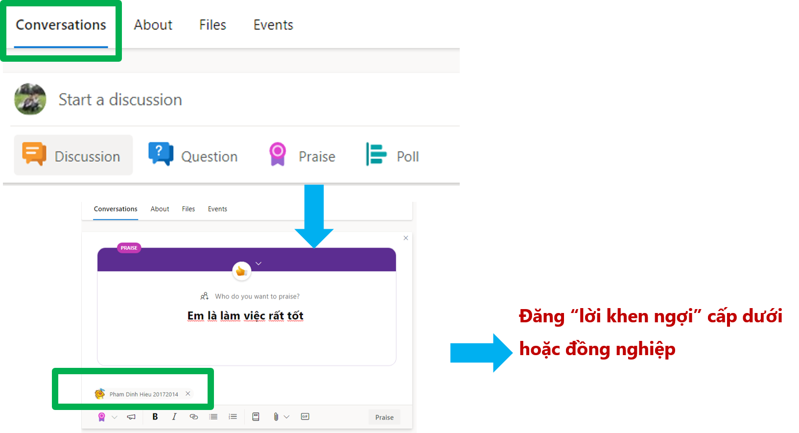 - Internal to collaborate with people inside your organization: Cộng tác với những người bên trong công ty của bạn