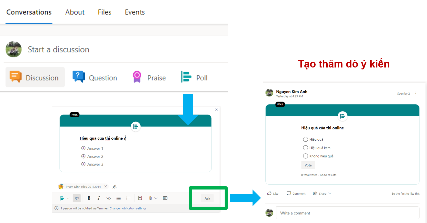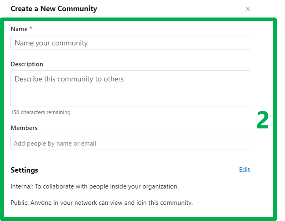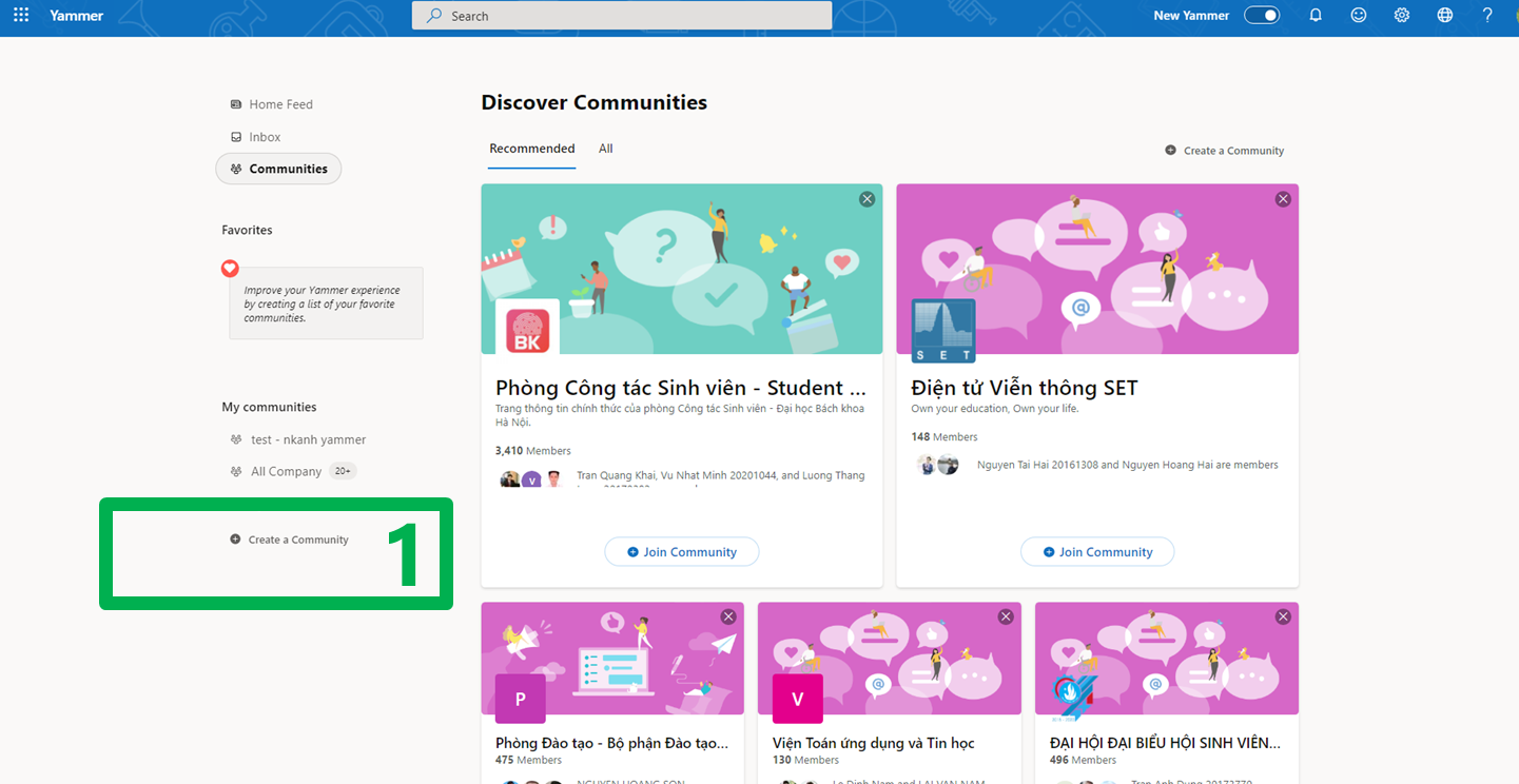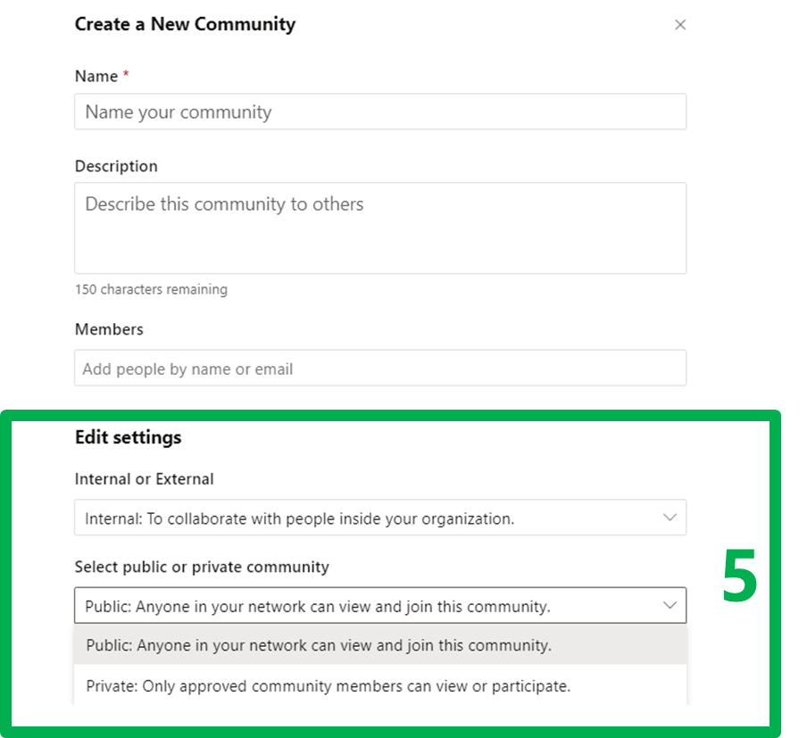 - Public Anyone in your network can view and join this community – Truy cập công khai, bất kỳ ai trong mạng này đều có thể xem cuộc hội thoại và đăng bài