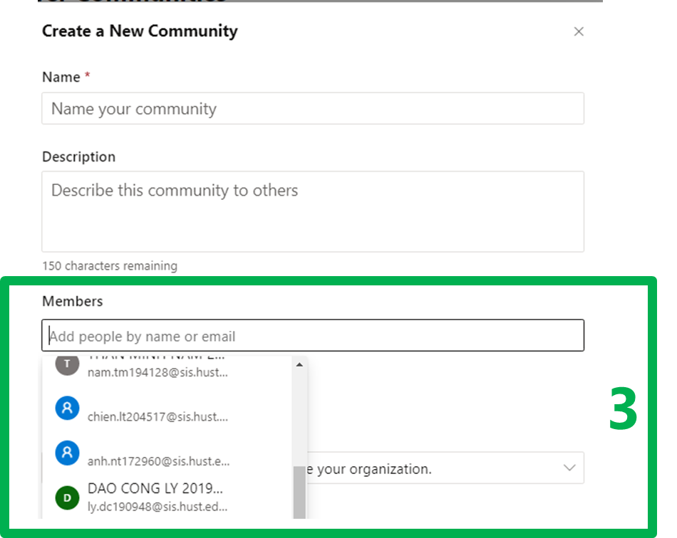 - Thêm người vào nhóm này theo tên hoặc email: Group Members