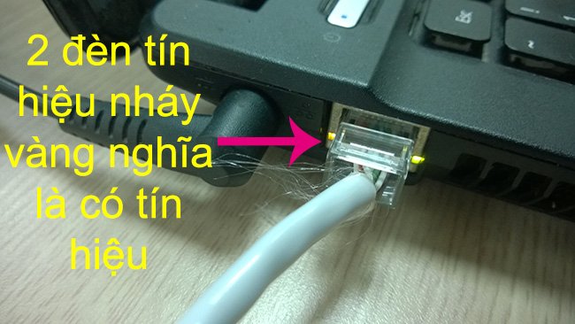 Chú ý rằng khi cắm đầu dây mạng, sẽ có 2 đèn tín hiệu nhỏ màu vàng ở trên cổng mạng, khi cả 2 đèn này nháy nghĩa là có tín hiệu Internet.