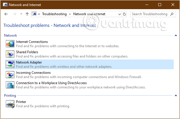 Một cách nữa để sửa lỗi là bạn chạy trình sửa lỗi Internet Connections hoặc Network Adapter được tích hợp sẵn trong Windows. Điều hướng theo mục sau: