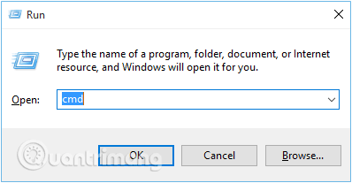 Bước 1: Nhấn tổ hợp phím Windows+R để gọi cửa sổ lệnh Run, nhập cmd vào rồi nhấn Enter để mở Command prompt.