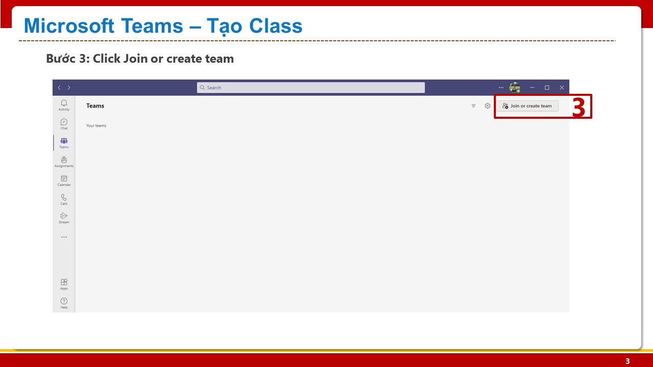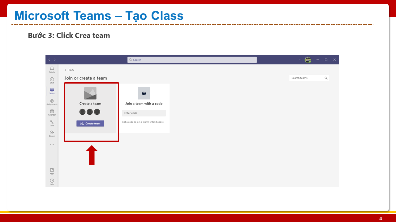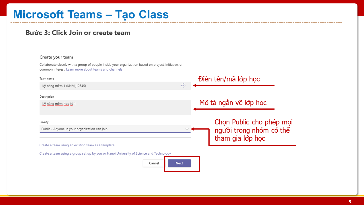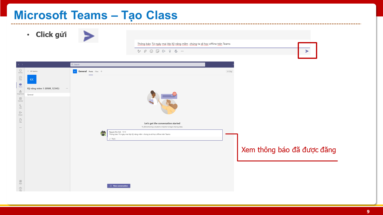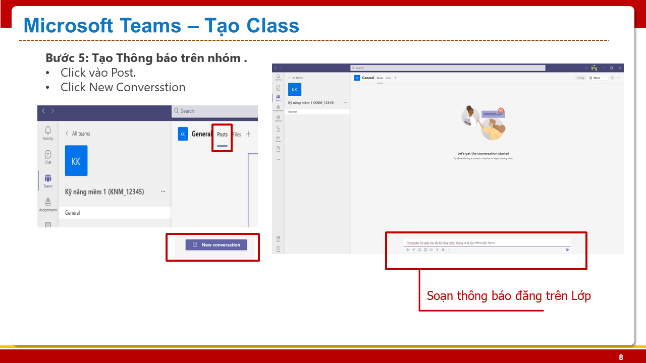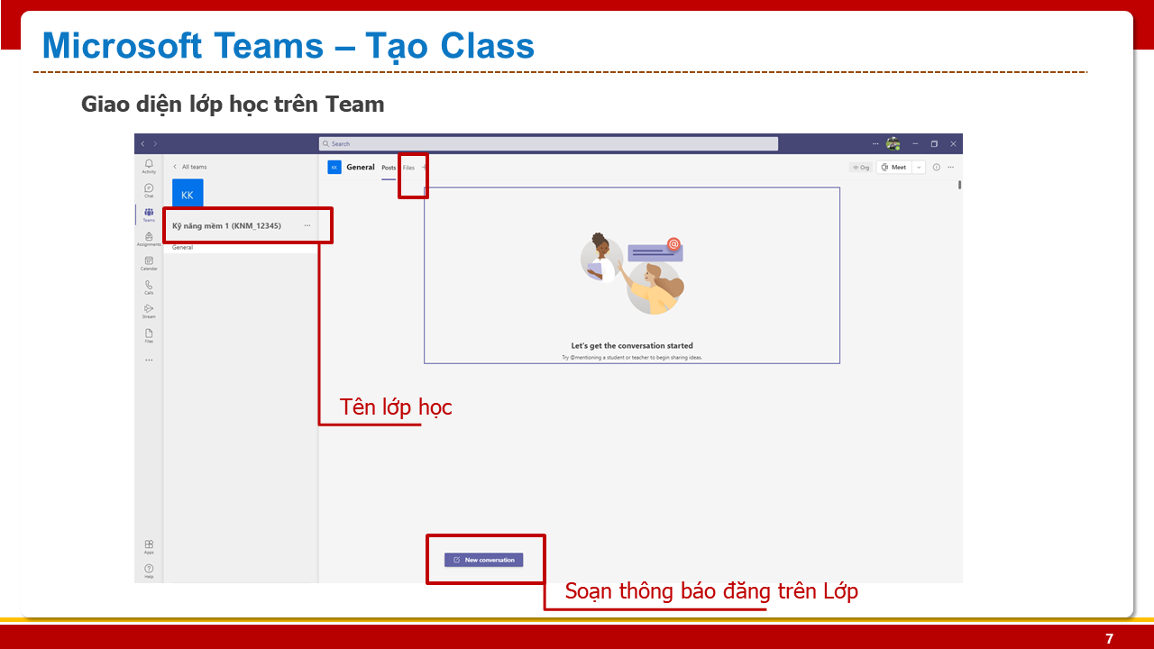 Để tạo lớp học trên Ms,Teams các Giảng Viên cần xác định lớp học sẽ thực hiện triển khai dạy online trên Ms.Teams. Ví dụ trong hướng dẫn này sẽ tạo nhóm quản lý lớp học Kỹ năng mềm. Tên lớp trên Ms.Teams: Kỹ năng mềm . Mã lớp 123456