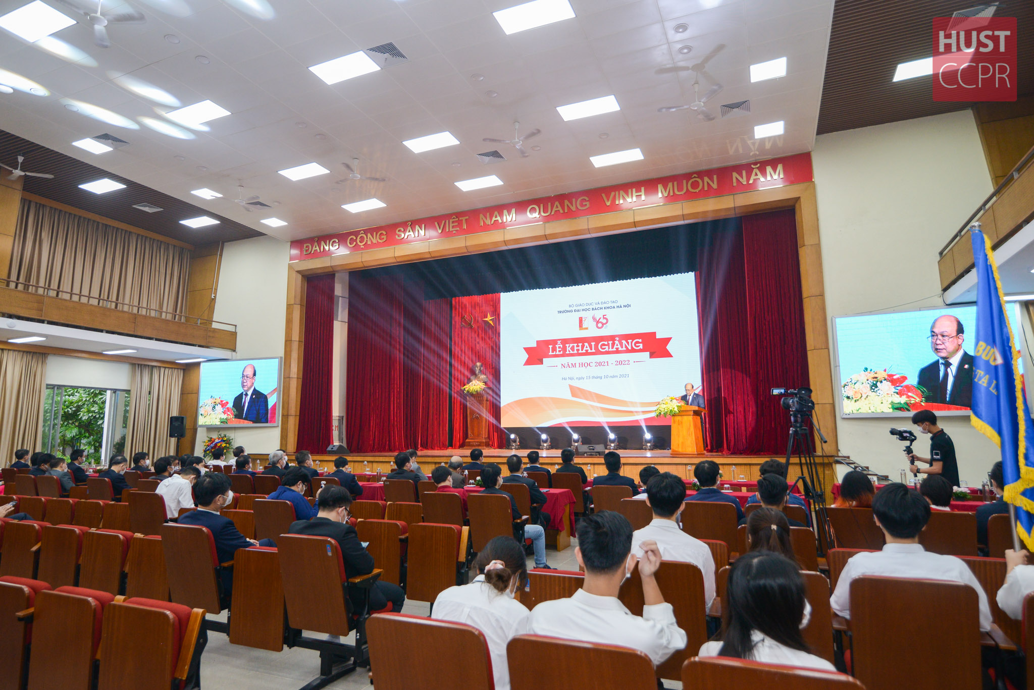 "Năm học 2021-2022, đối diện với đại dịch Covid-19, thầy muốn gửi các em hai từ “Yêu thương” và “Kiên cường”: Hãy luôn tin rằng các em luôn nhận được sự yêu thương của gia đình, thầy cô, bè bạn và họ cũng cần có sự yêu thương của chính các em; hãy kiên cường, bền bỉ để vượt qua các thách thức, khó khăn.” – PGS. Huỳnh Quyết Thắng – Hiệu trưởng Trường Đại học Bách khoa Hà Nội nhắn gửi tới các tân sinh viên K66 trong lễ khai giảng.