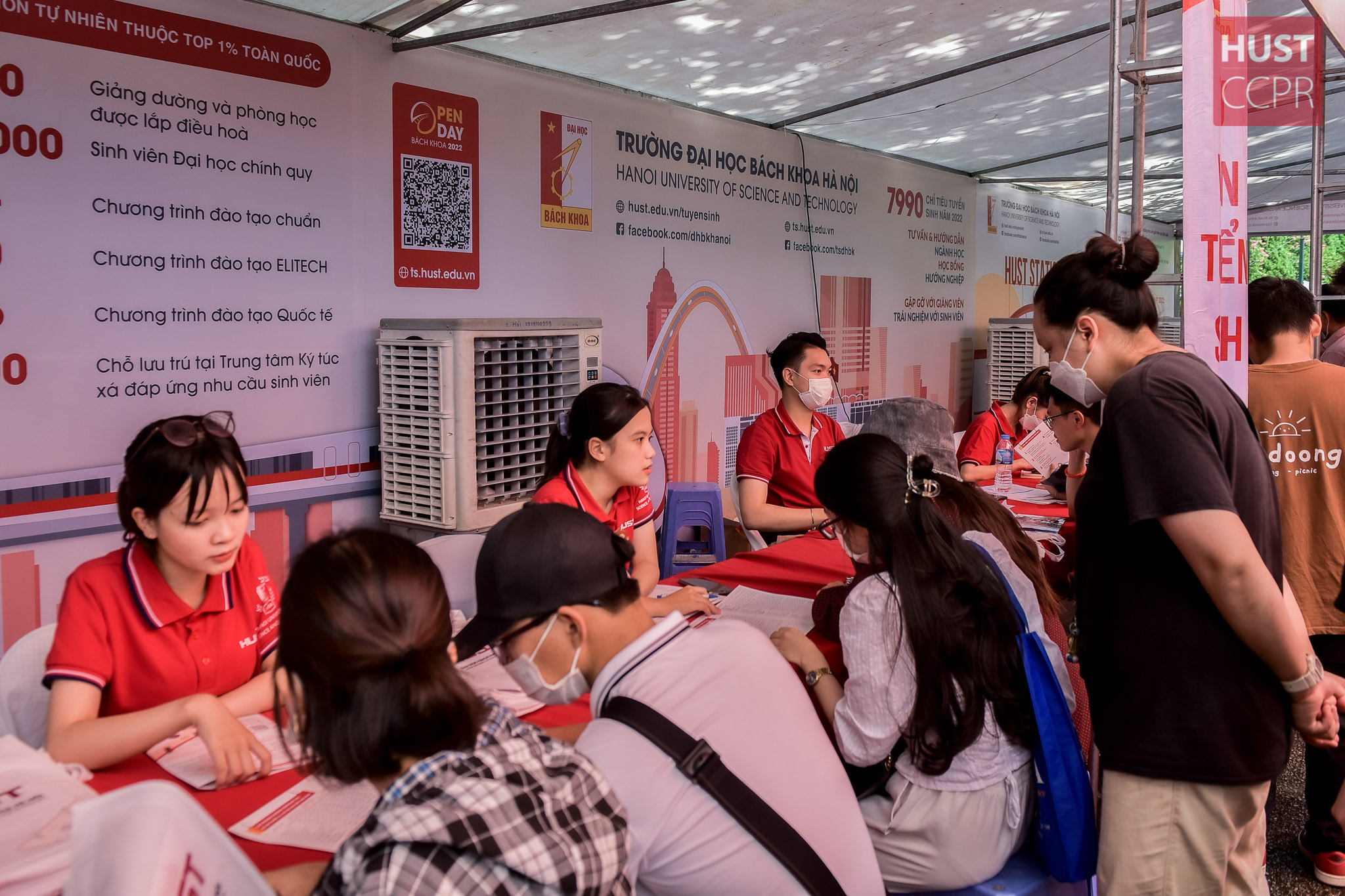 Từ 7h sáng nay (24/7/2022), rất đông thí sinh khu vực phía Bắc đến Trường Đại học Bách khoa Hà Nội dự Ngày hội tư vấn Xét tuyển ĐH, CĐ. Gian tư vấn chung và hội trường tư vấn chuyên sâu về các ngành học của Bách khoa có một điểm đặc biệt: Rất đông học sinh, phụ huynh có nhu cầu tìm hiểu thêm về các ngành, chương trình học sau khi đã chắc chắn một suất học tại Bách khoa! Có thể coi đây là ngày hội của những sinh viên tương lai của Bách khoa!