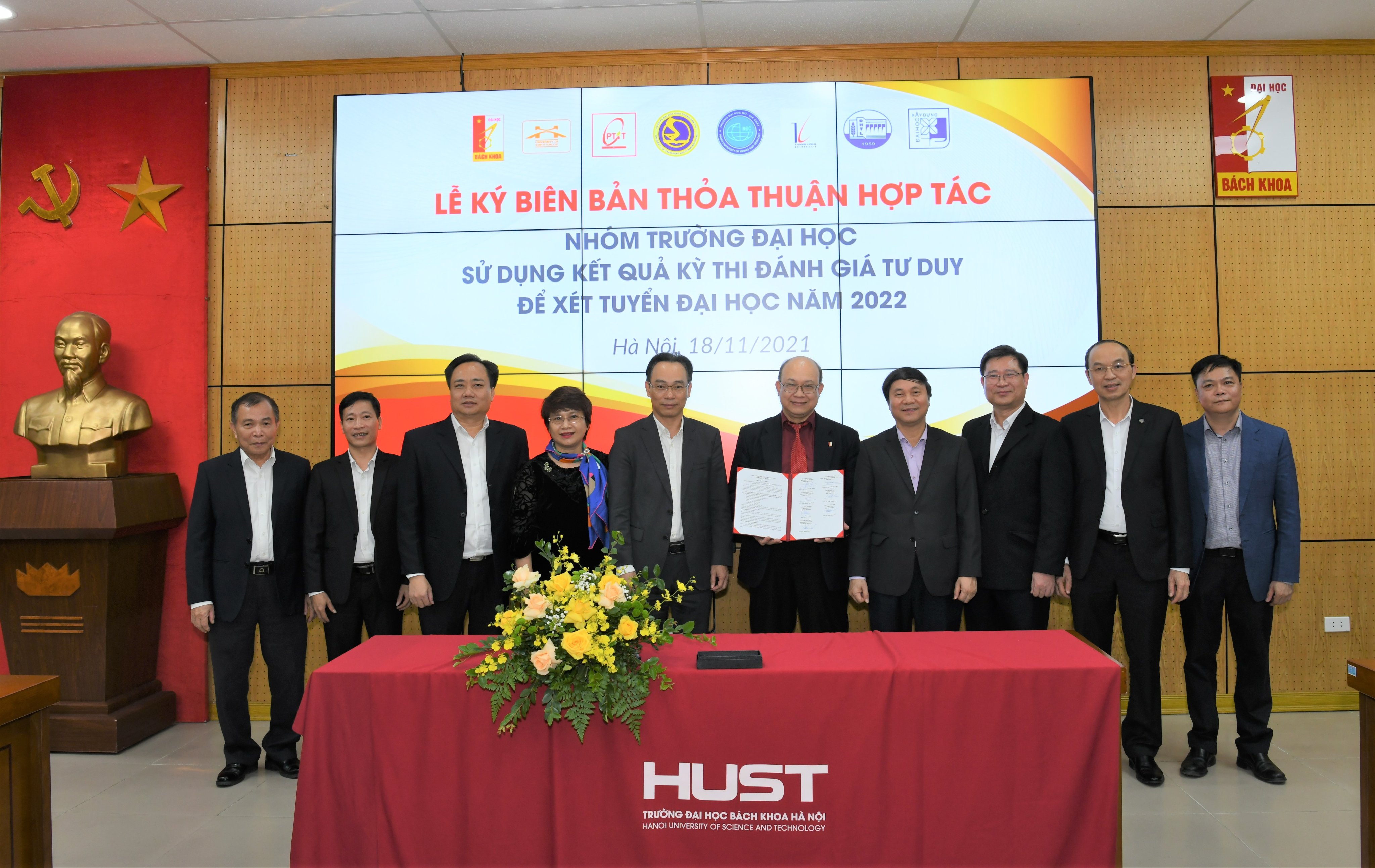 Ngày 18/11/2021, tại Trường Đại học Bách khoa Hà Nội đã diễn ra Lễ ký kết biên bản thỏa thuận hợp tác giữa nhóm trường đại học tham gia và sử dụng kết quả kỳ thi đánh giá tư duy để xét tuyển đại học năm 2022.