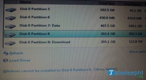 Và theo như mô tả của lỗi không hiện Next khi cài Win 7 thì đây là lỗi liên quan đến dịnh dạng ổ cứng. Mặc dù rất hiếm gặp một ổ cứng nào đó có định dạng không phải chuẩn NTFS để cài Windows 7 nhưng trường hợp này không phải là không xảy ra. Nếu bạn là một trong số những trường hợp hiếm hoi đó thì hướng dẫn sau đây rất hữu ích cho bạn trong việc sửa lỗi không hiện Next khi cài Win 7.