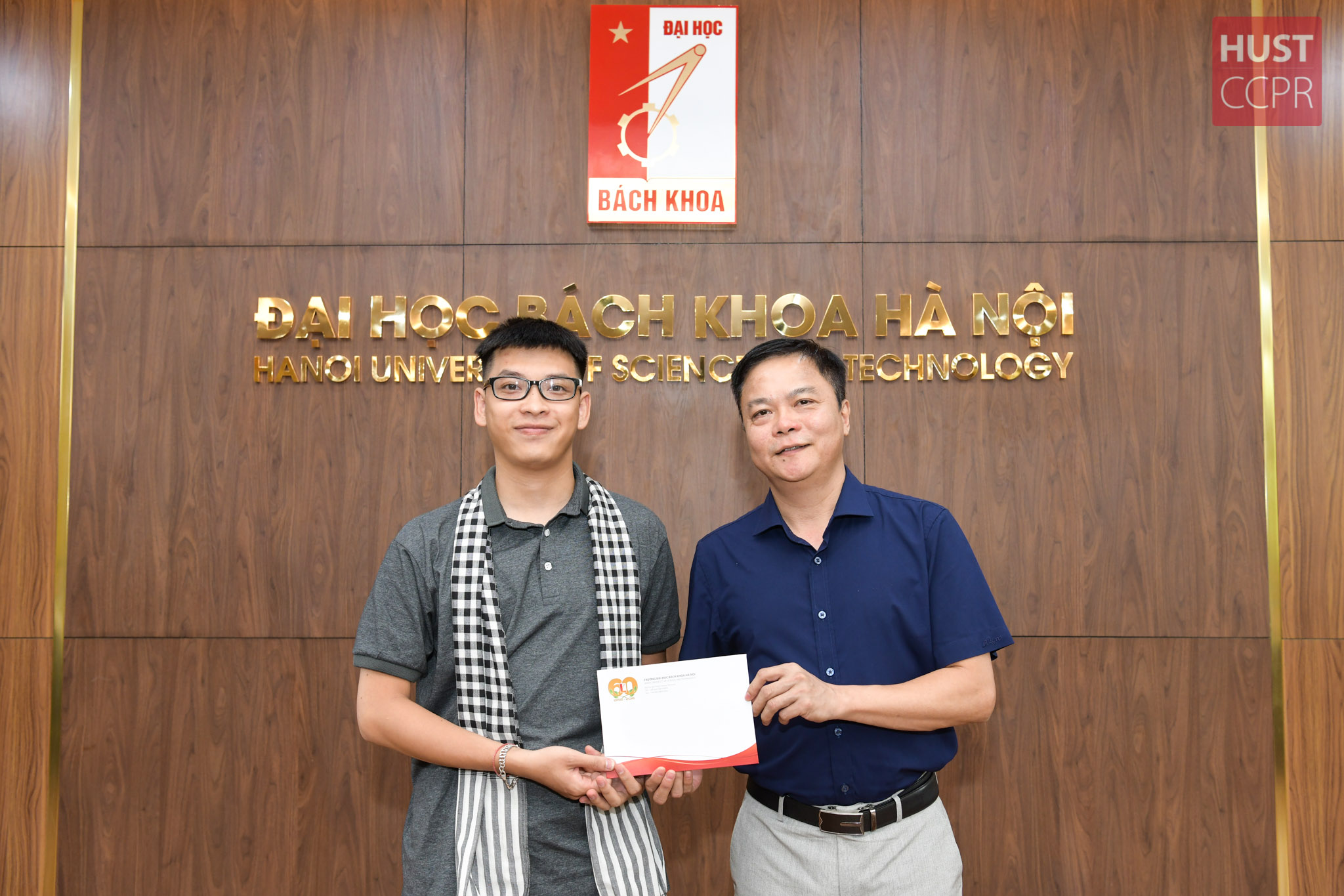 Trước khi chia tay các sinh viên tham gia khóa đào tạo Sĩ quan dự bị, PGS. Nguyễn Phong Điền thay mặt Trường Đại học Bách khoa Hà Nội cùng hai thầy Phó Hiệu trưởng Trường Cơ khí và Trường Công nghệ Thông tin và Truyền thông trao tặng những món quà động viên tinh thần các sinh viên.