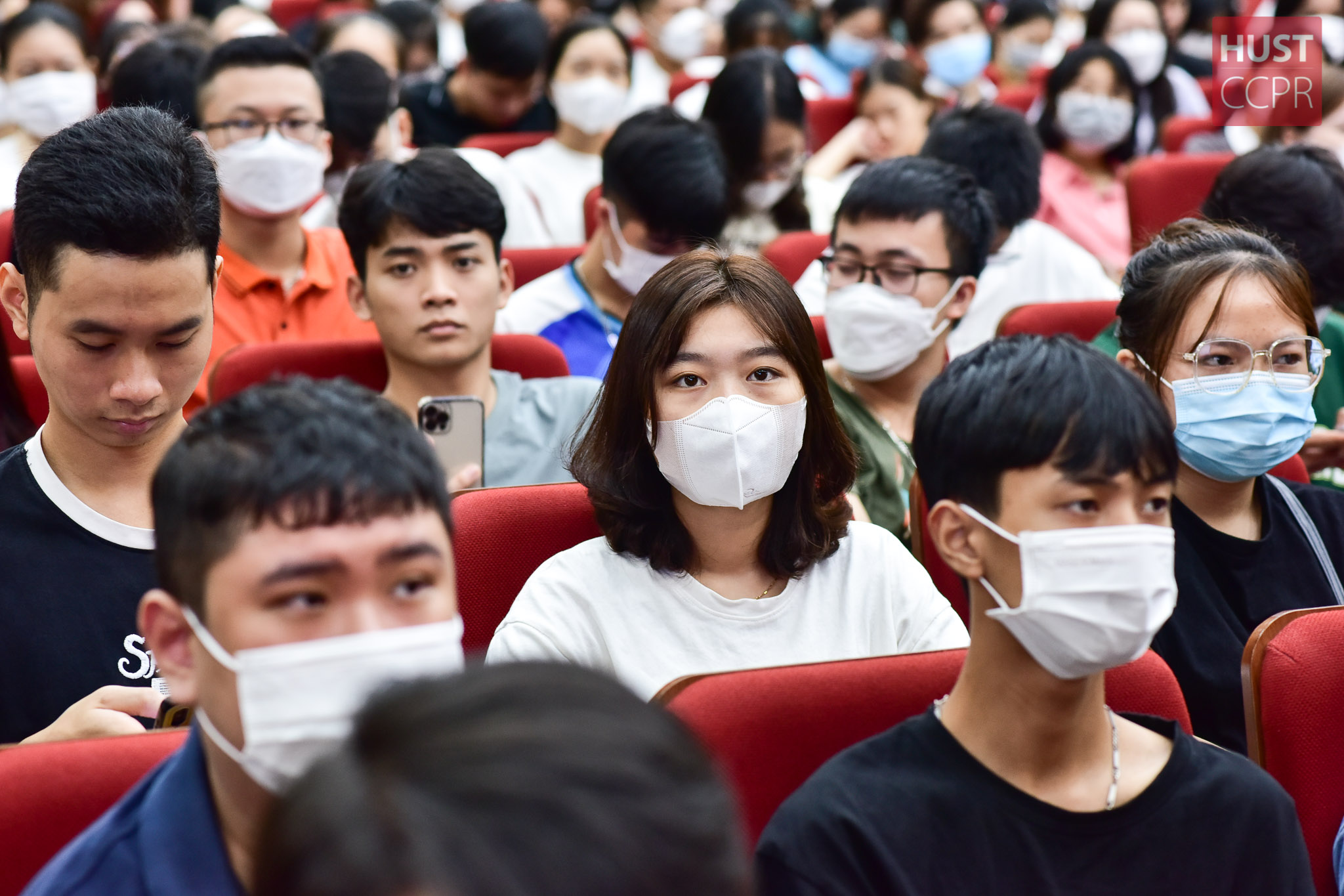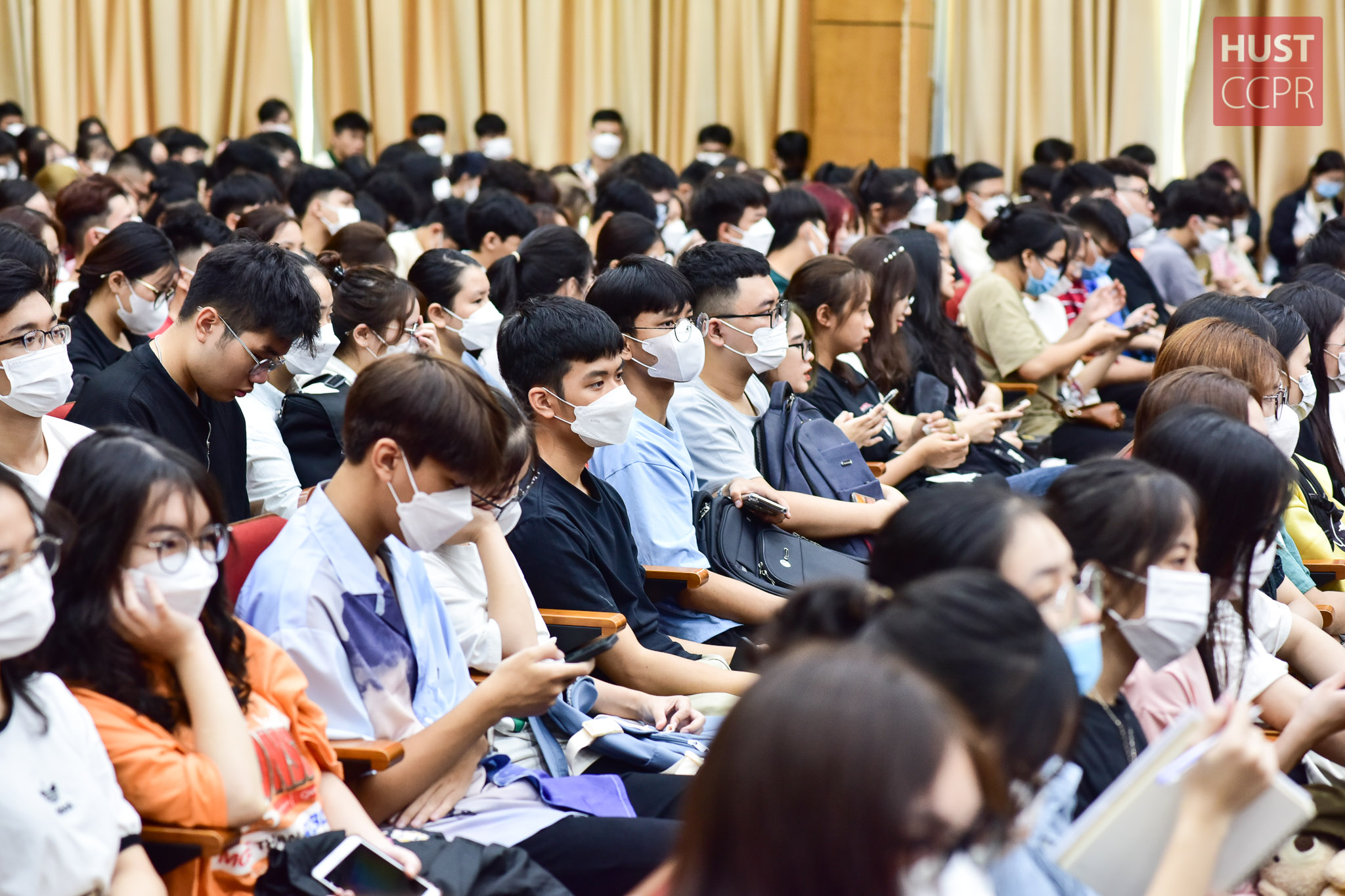 Hòa chung với không khí đông vui buổi sinh hoạt đầu khóa, Hội trường C2 với 1000 chỗ ngồi đã chật kín, thậm chí, sinh viên đến Trường phải tham dự trực tuyến tại phòng hội thảo C2.