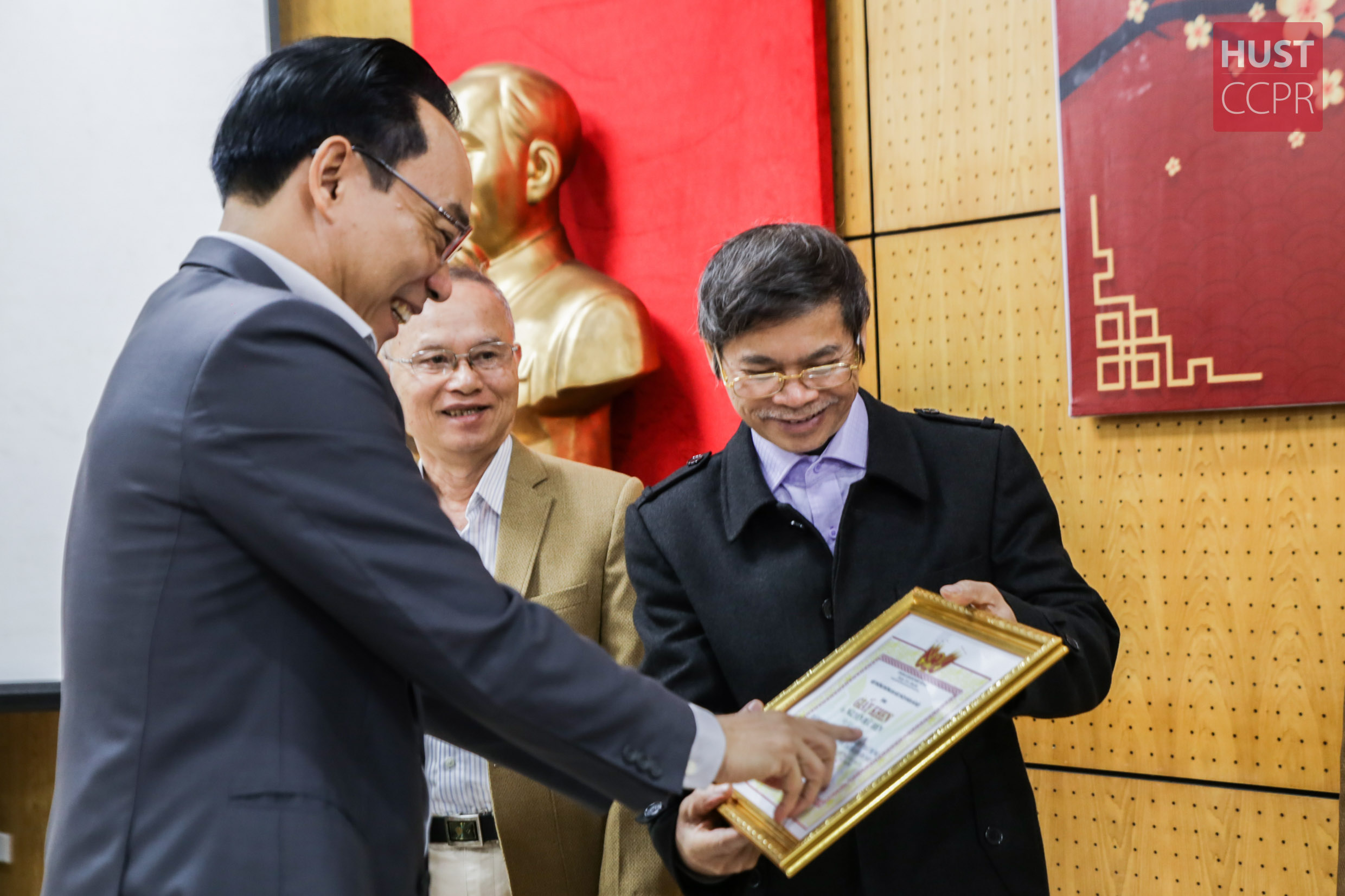 Tại buổi gặp mặt, lãnh đạo Trường ĐHBK Hà Nội tặng Giấy khen cho 34 CBVC vì đã có nhiều đóng góp trong sự nghiệp xây dựng và phát triển Nhà trường.