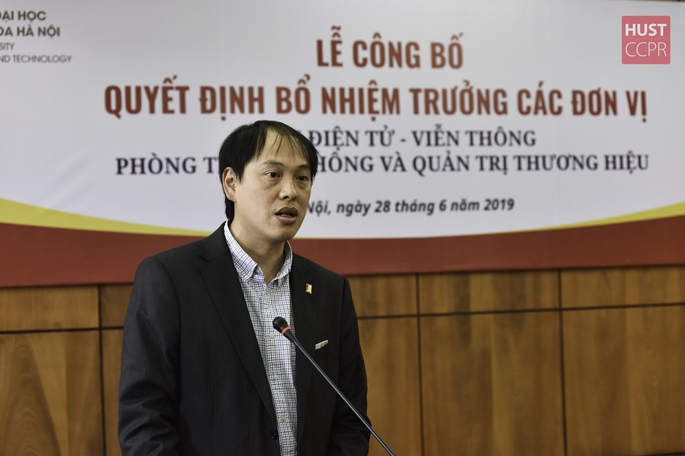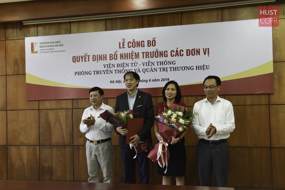 Mở đầu buổi lễ, PGS Trần Ngọc Khiêm – Trưởng phòng Tổ chức cán bộ công bố Quyết định bổ nhiệm chức danh Trưởng hai đơn vị nhiệm kỳ 5 năm (2019 – 2024). Theo đó, PGS Nguyễn Hữu Thanh được bổ nhiệm lại chức vụ Viện trưởng Viện Điện tử - Viễn thông (ĐTVT), PGS Phạm Thanh Huyền – Trưởng phòng Truyền thông và Quản trị thương hiệu.