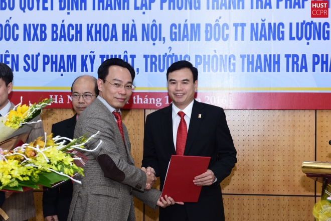 Ngày 21/12/2016, tại phòng Hội thảo C2, Trường ĐHBK Hà Nội đã trang trọng tổ chức Lễ công bố Quyết định thành lập Phòng Thanh tra Pháp chế và bổ nhiệm cho 04 đồng chí là Trưởng các đơn vị nhiệm kỳ 2016 - 2021.