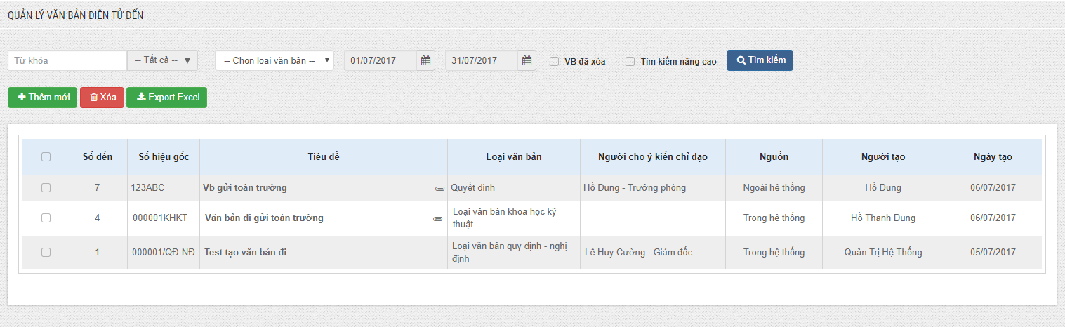 - Để thêm mới văn bản đến, người dùng click chuột vào nút